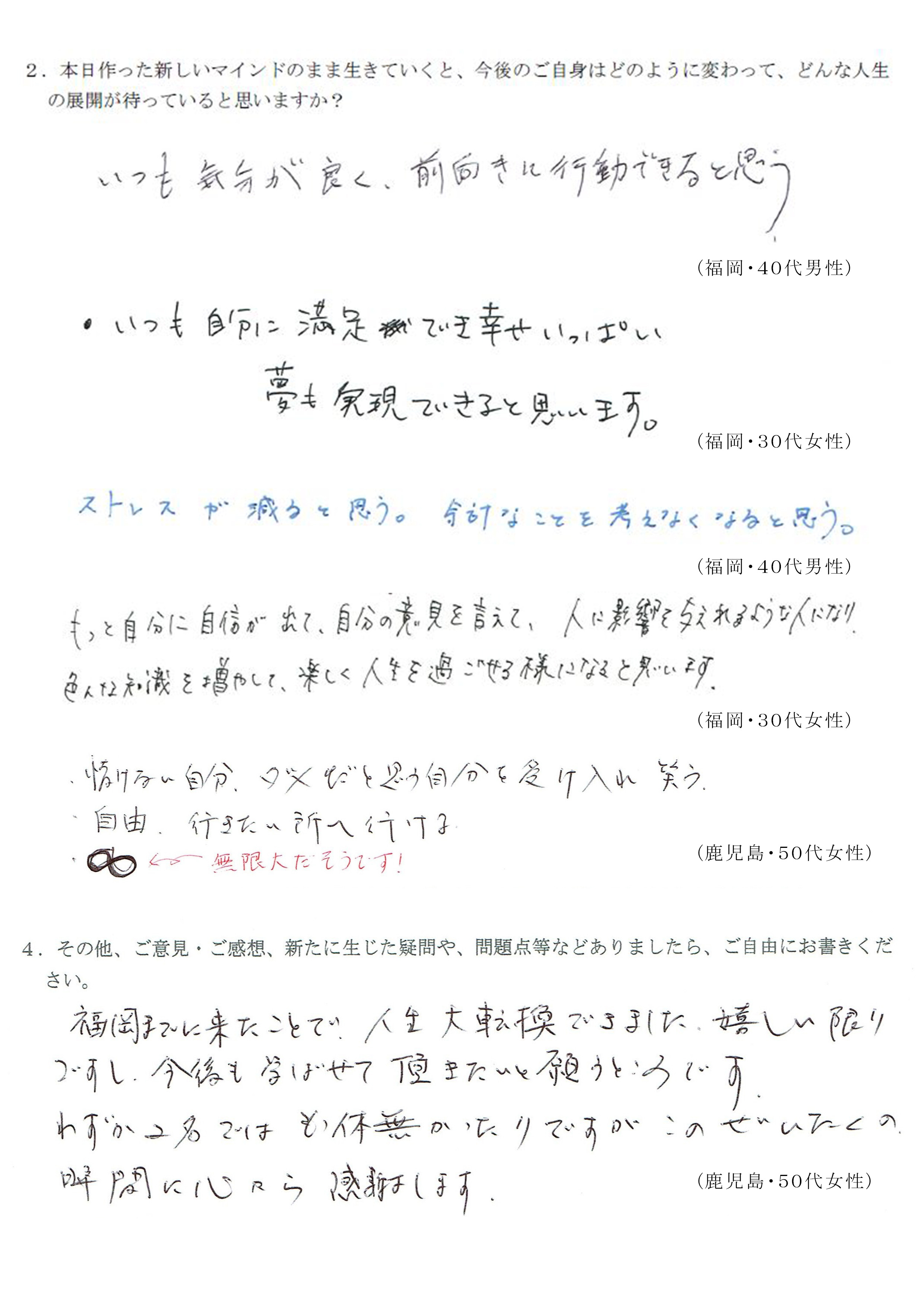 毎回、この2時間だけでマインドを一気に変えてしまう方も